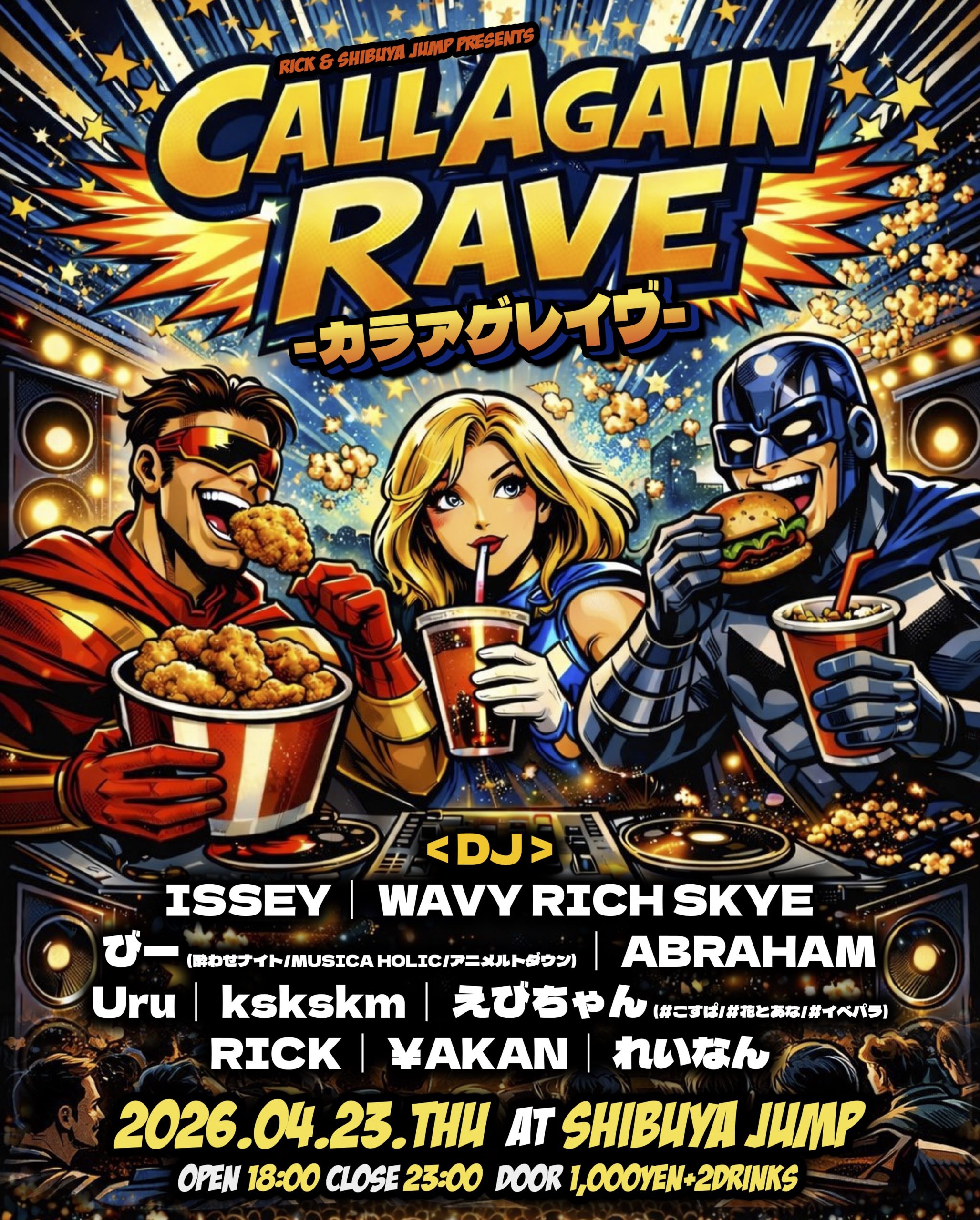 <DJ>ISSEY WAVY RICH SKYE ABRAHAM びー(酔わせナイト/MUSICA HOLIC/アニメルトダウン) Uru kskskm えびちゃん(#こすぱ/#花とあな/#イベパラ) ¥AKAN れいなん RICK